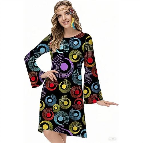 Retrò Vintage Anni '70 Fantastico Vestito Fascia Hippie Disco Psichedelico Costume Per donna Halloween Carnevale Vacanza Festival Musicale Festival Adulti Vestito Fascia