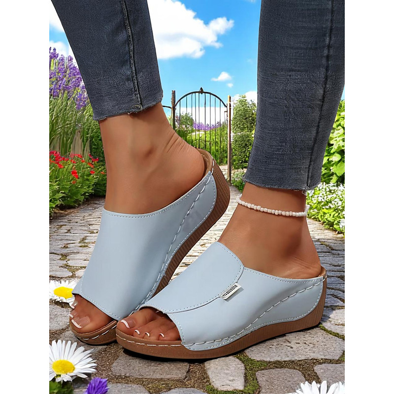 Women's Light Blue Wedge Sandals – Open-Toe Slip-On Sandals with Soft Sole for Garden Walks and Summer Casuals