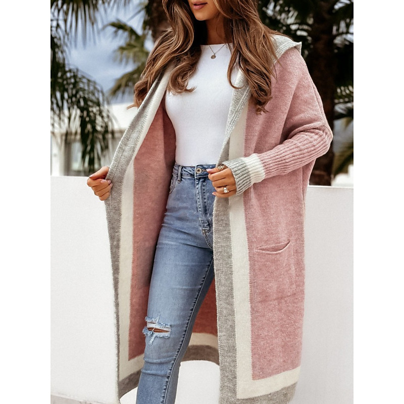 Women's Sweater Cardigan Elegant Fashion Streetwear Pure Color Hooded Pocket Knitted Long Sleeve Long Tops Knit Outdoor Daily Weekend Black Pink Fall Winter