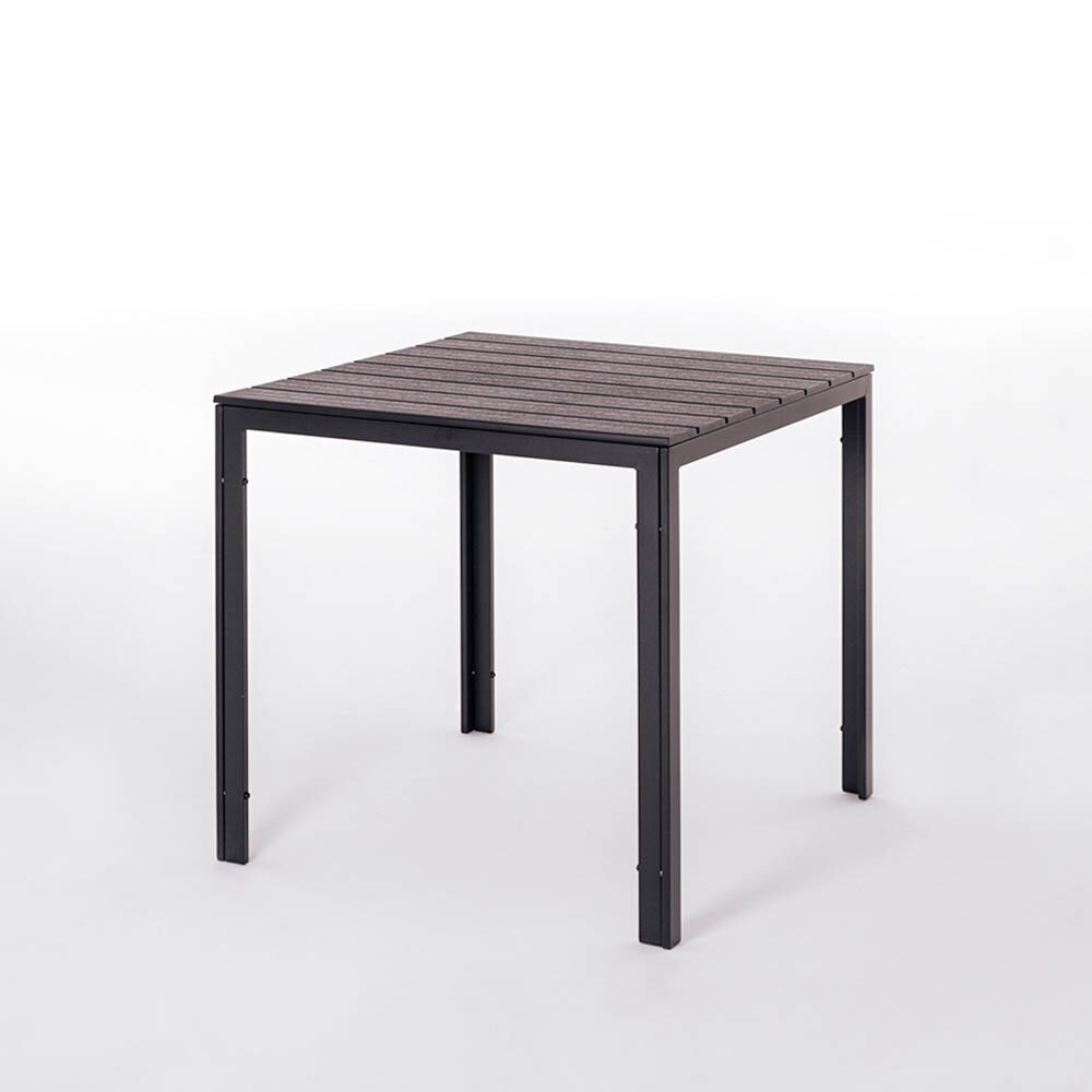 RATTATAN Tisch außen 78x78 cm aus Stahl, Holzoptik-Top, modernes Design für Garten/Terrasse – GABRIEL – Mokka