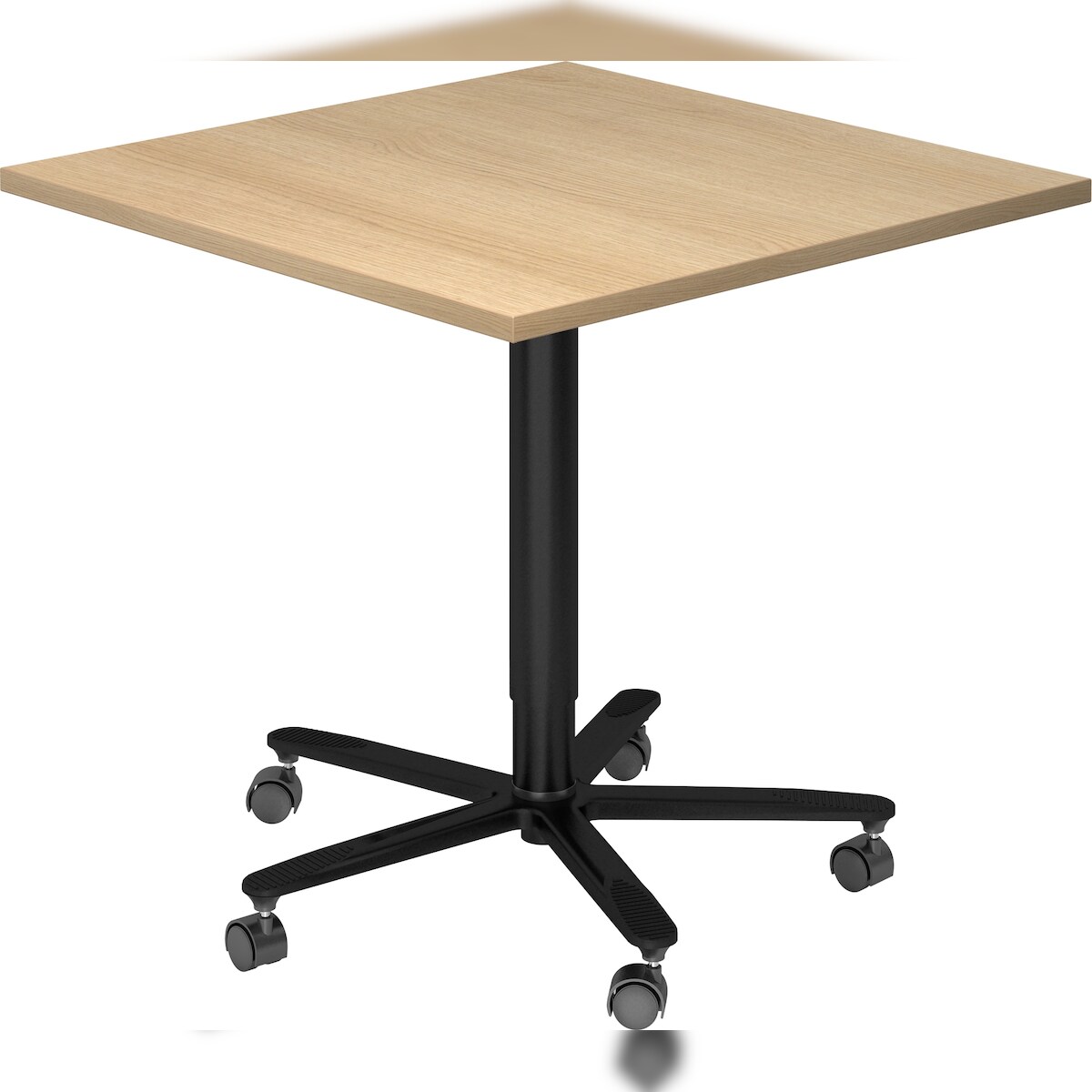 bümö Säulenhubtisch höhenverstellbar, Stehtisch Büro, Bistrotisch eckig 80 x 80 cm - Besprechungstisch Eiche, Stehtisch Holz-Platte, Säule aus Metall