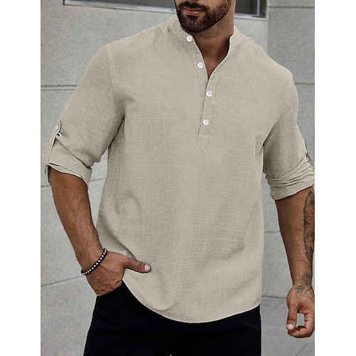 Per uomo Camicia di lino Camicia popover Camicia casual Camicia da Spiaggia Camicia con colletto alla coreana Semplice Casuale Abbigliamento casual alla moda Nero Bianco Rosa Azzurro cielo Manica