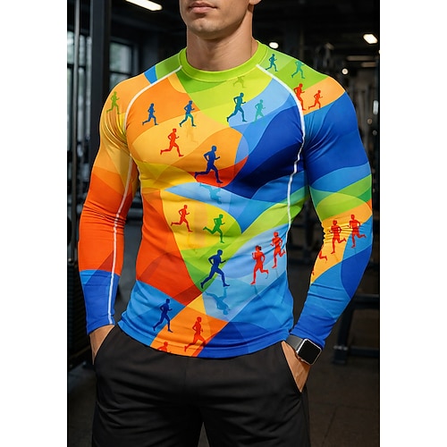 Per uomo Maglia a compressione Top da corsa Maglia da corsa Stampa 3D Manica Lunga Maglietta Geometrico Asciugatura Rapida Compressione Elasticizzato Traspirante Allenamento in Palestra Allenamento