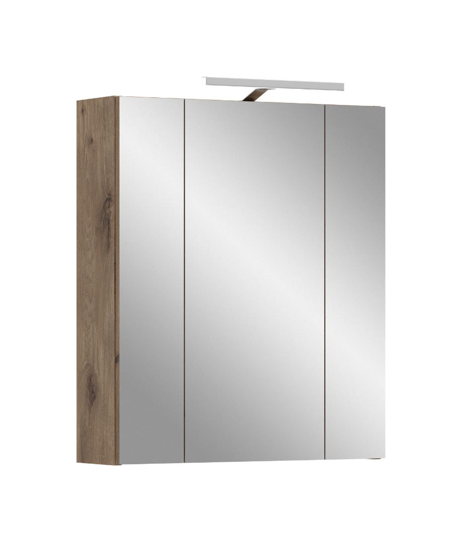 Ice Spiegelschrank Bad Inkl. Beleuchtung 3 Spiegeltüren Schwarz matt, Eiche Dekor.
