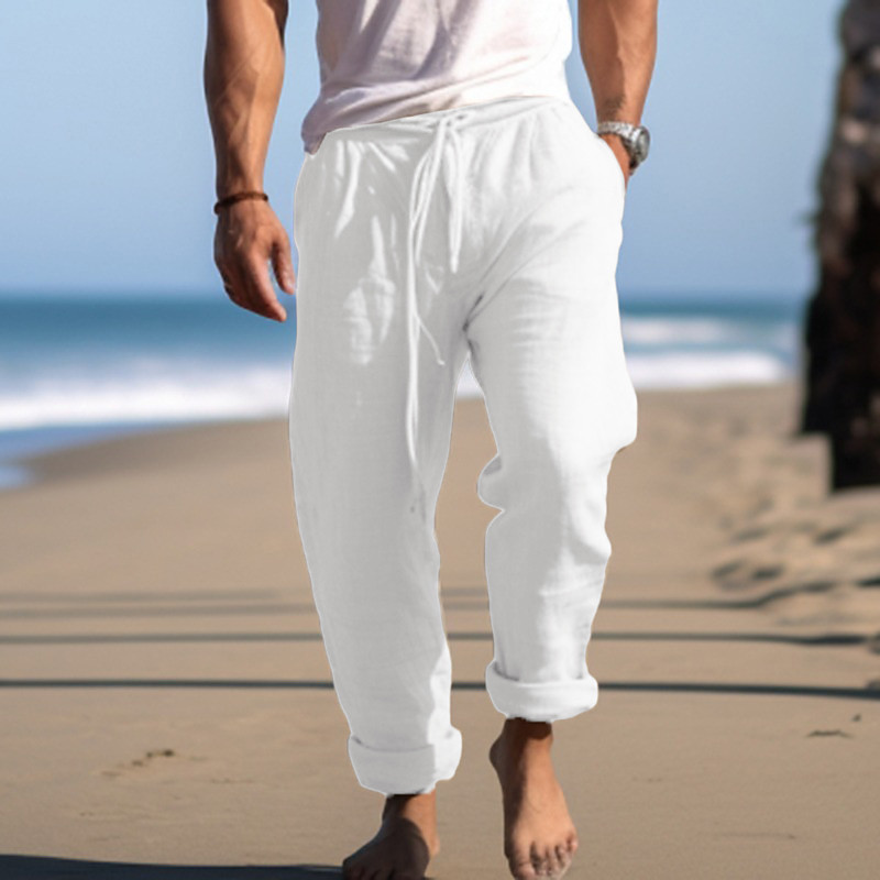 Men's Linen Pants Trousers Summer Pants Drawstring Elastic Waist Plain Comfort Breathable Outdoor Daily Going out Fashion Casual Black White