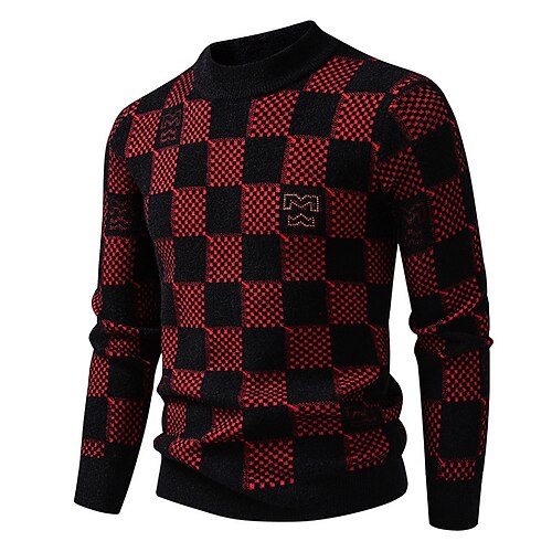 Per uomo Felpa Maglione A Coste Maglia Top Regolari Lavorato a maglia Slim Fit Plaid Girocollo Maglieria Contemporaneo Casuale Abbigliamento quotidiano Abbigliamento Autunno Inverno Cammello Borgogna