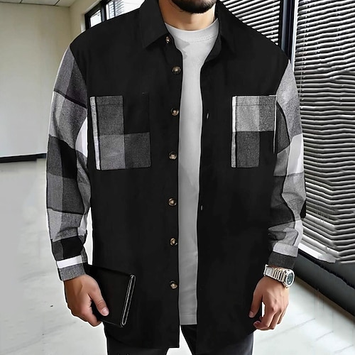 Per uomo Giacca-camicia Giacca camicia Giacca invernale Plaid Vacanza Abbigliamento quotidiano Nero Azzurro cielo Manica Lunga Bavero Autunno Inverno Abbigliamento Tasca Frontale