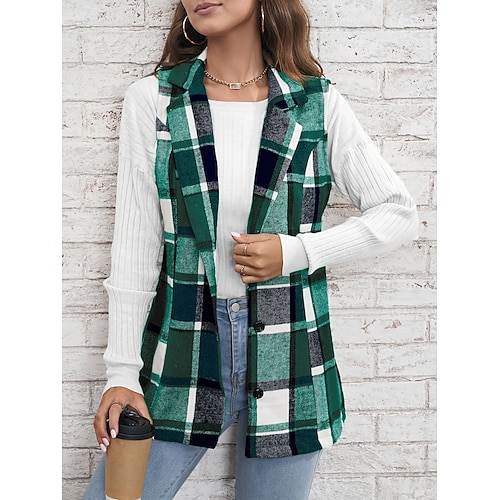 Per donna Giacca Casual Gilet Confortevole Traspirante Bottoni Stampato Casual Plaid Vacanza Streetwear Casuale Abbigliamento quotidiano Monopetto Regolare Collo ripiegato Vestibilità regolare Manica