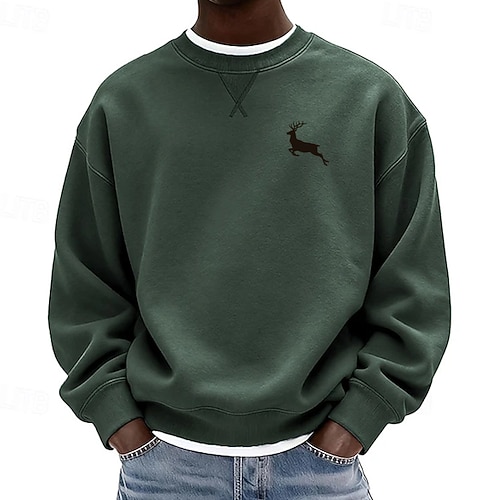 Per uomo Cervo Felpa Manica Lunga Felpe Girocollo Abbigliamento Sportivo Classico Casuale Quotidiano Tutte le stagioni Blu Nero Blu reale Abbigliamento progettista Stampa 3D S M L XL 2XL 3XL