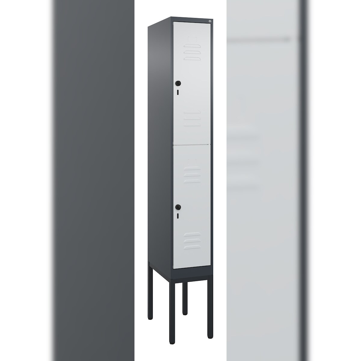 C+P Z-Spind Classic PLUS, Füßen, 2 Abteile, HxBxT 195x40x50cm, Zylinderschloss, Anthrazit von PROREGAL