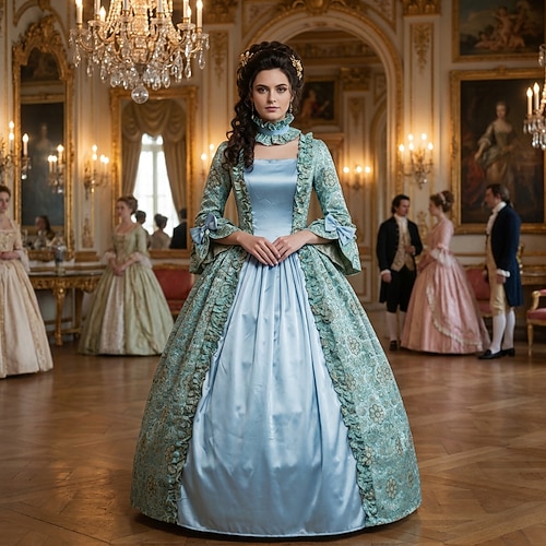 Vintage Rococò Barocco Maxi Vestito Normale A sbuffo Costumi a tema film / TV regina Elisabetta Principessa Collo quadrato Costume Reale Halloween Carnevale Mascherata Feste Halloween Performance