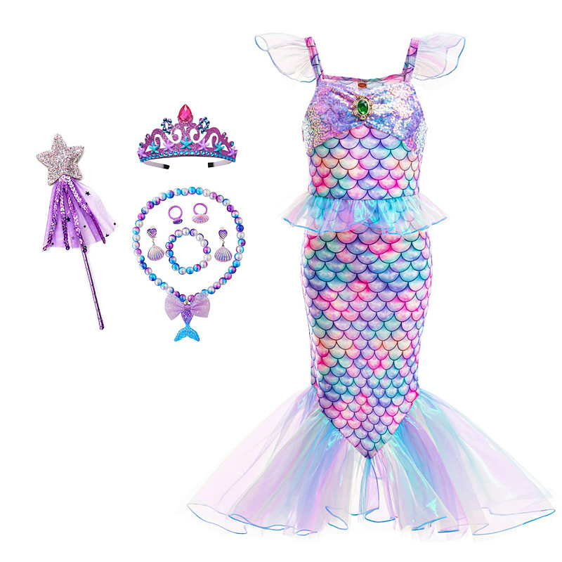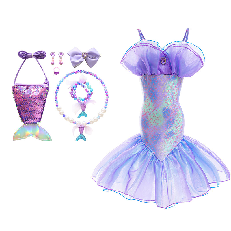 The Little Mermaid Little Mermaid Mermaid Tail Aqua Princess Dress Halloween Dress Cosplay Costume Theme Party Costume Cosplay Movie Cosplay for Girls' Kid's Carnival Masquerade