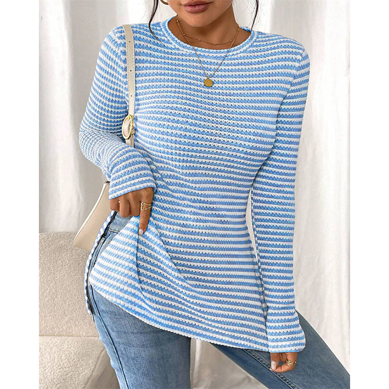 Women's Dressy Tops Solid Color Striped Elegant Cute Ladies Long Sleeve Crew Neck Regular Tops Work Daily Going out Tunic Draped Light Blue Black Wine Light Brown Apricot Fall Winter
