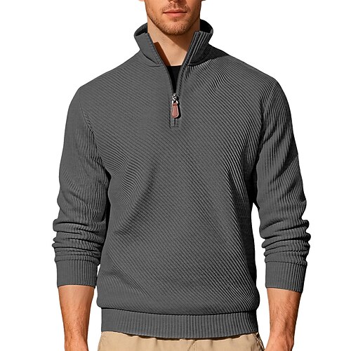 Per uomo Maglia Felpa con zip corta Nero Vino Blu marino Cachi Grigio scuro Mezza zip Semplice Jacquard Sport Outdoor Quotidiano Ferie Poliestere Streetwear Essenziale Casual Primavera Autunno