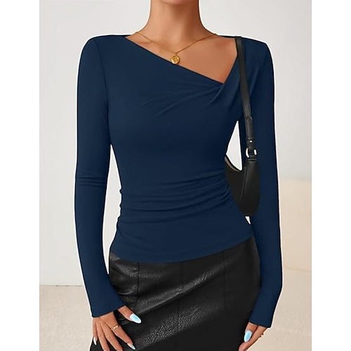 Per donna Top Eleganti Tinta unica Semplice Elegante Signore Classico Manica Lunga Manica a Lanterna Girocollo Top Regolari Lavoro Quotidiano Uscire Patchwork Drappeggiato Bianco Vino Blu Azzurro