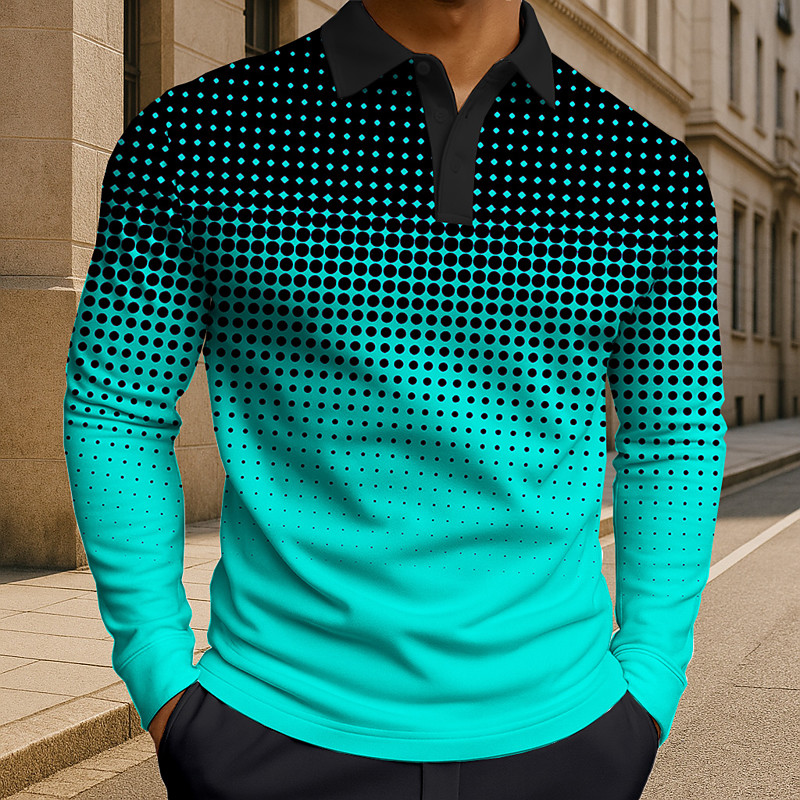 Men's Polka Dot Geometic Polo Long Sleeve Polo Shirts Lapel Casual Athleisure Daily Wear 3D Print Buttons Spring Fall Winter Blue Purple Green