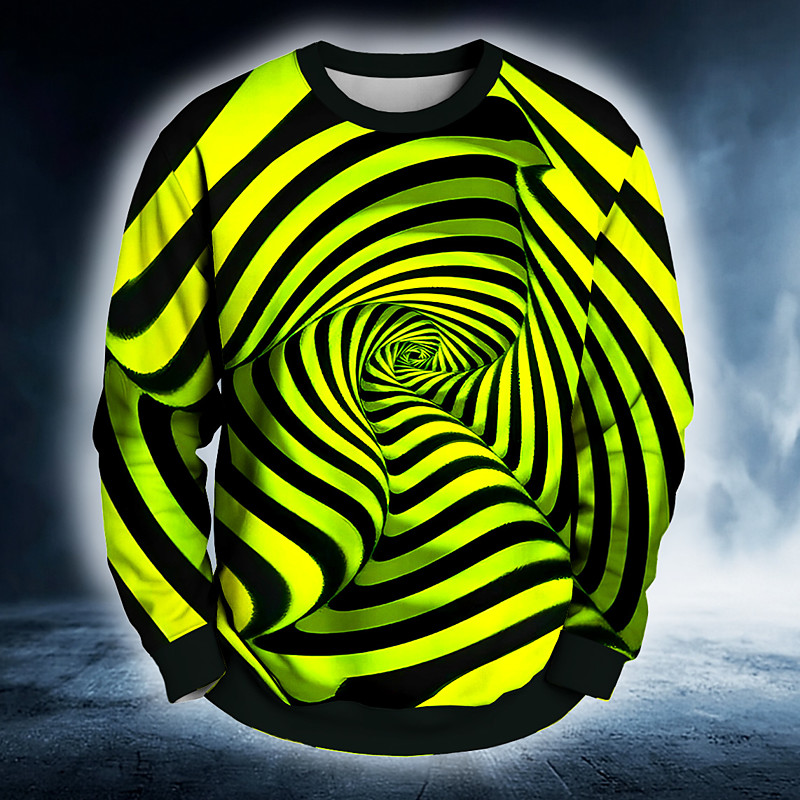 Men's Geometric Optical Illusion 3D Sweatshirt Casual Crew Neck Vacation Party Gift Blue Green Crewneck All Seasons Designer