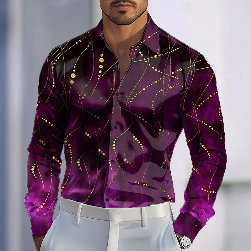 Mardi Gras Men's Gradient Color Carnival Beads Shirt Satin Shirt Dress Shirt Long Sleeve Fashion Casual Party Holiday Summer Spring Turndown 3D Print Button Up Shirts Dark Red Dark Purple