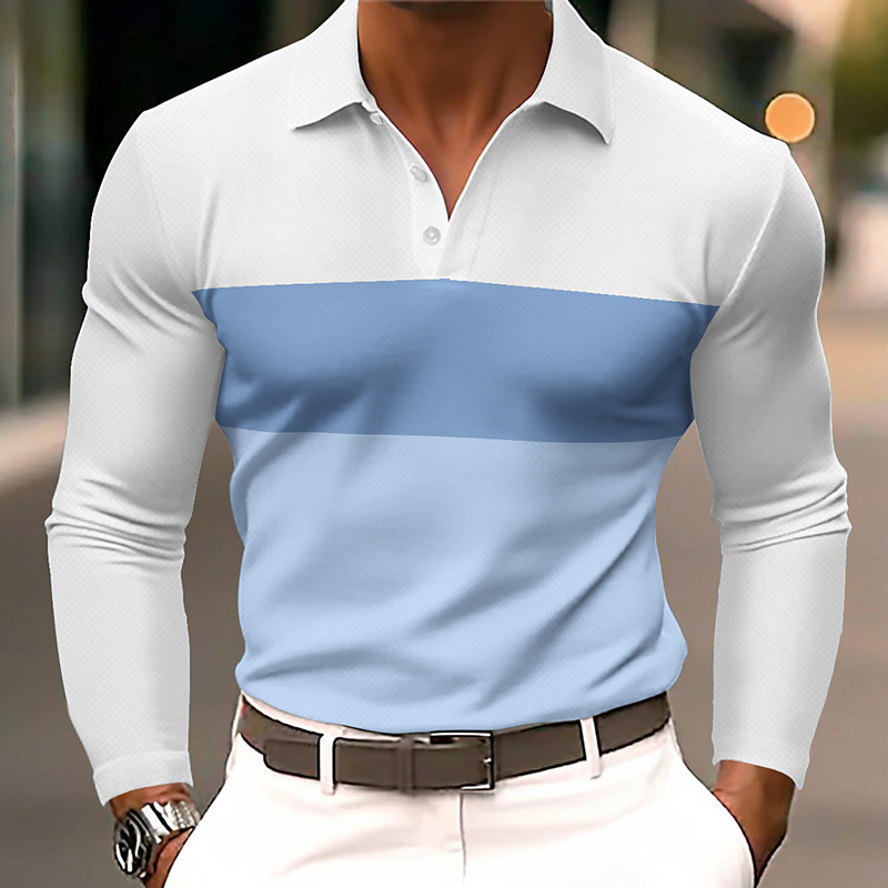 Men's Horizontal Stripes Polo Long Sleeve Polo Shirts Lapel Casual Outdoor Athleisure Daily Wear 3D Print Buttons Spring Fall Blue Navy Blue Purple