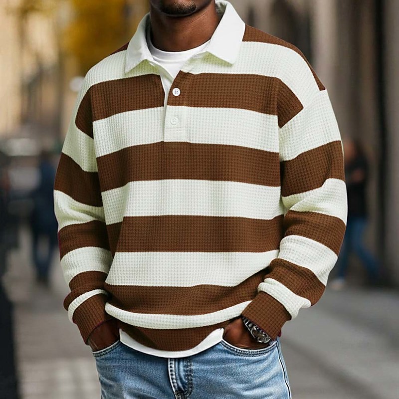 Men's Horizontal Stripes Waffle Polo Shirts Rugby Polo Rugby Polo Shirts Long Sleeve Polo Shirts Lapel Sportswear Casual School Athleisure Daily Wear 3D Print Spring Fall Winter Blue Red Brown