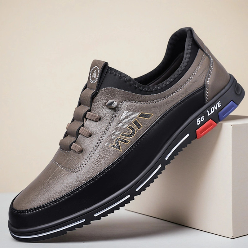 Men's Brown Faux Leather Comfort Sneakers – Cushioned Non-Slip Outdoor Shoes for Walking, Work and Everyday Wear