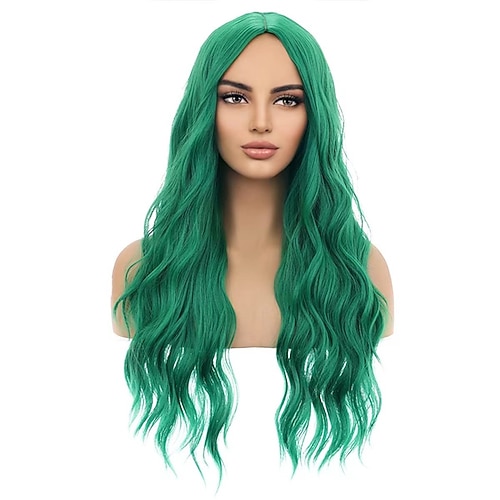 St. Patrick 2026 Grüne Perücken für Frauen Mädchen lange lockige wellige smaragdgrüne Perücken Mittelscheitel hitzebeständig