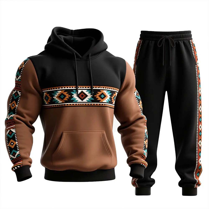 Men's Tribal 2pcs 3D Sweatshirt Sets Tracksuit Hoodie Sweatshirt Long Sleeve Long pants Hooded Ethnic Style Casual Daily Athleisure 3D Print Spring Fall Winter Brown