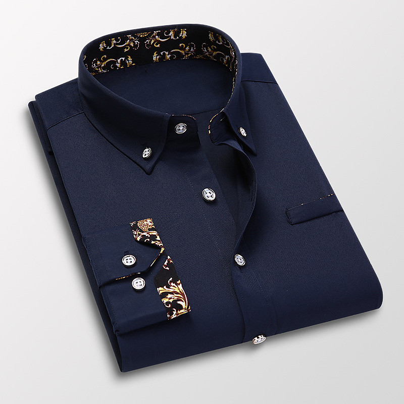 Men's Dress Shirt Button Down Shirt Collared Shirt Floral Wedding Work Wine Black White Navy Blue Long Sleeve Turndown Spring Fall Clothing Apparel Button-Down