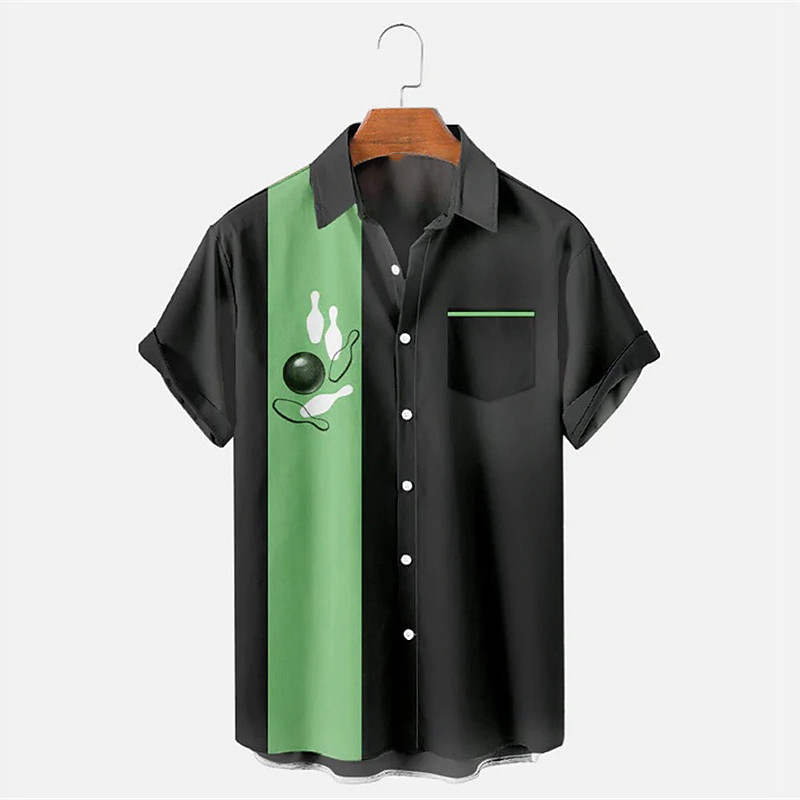 Men's Bowling Ball Shirt Button Up Shirt Short Sleeve Designer Casual Soft Outdoor Daily Holiday Summer Spring Turndown Print Button-Down White Green Black Yellow Red Blue