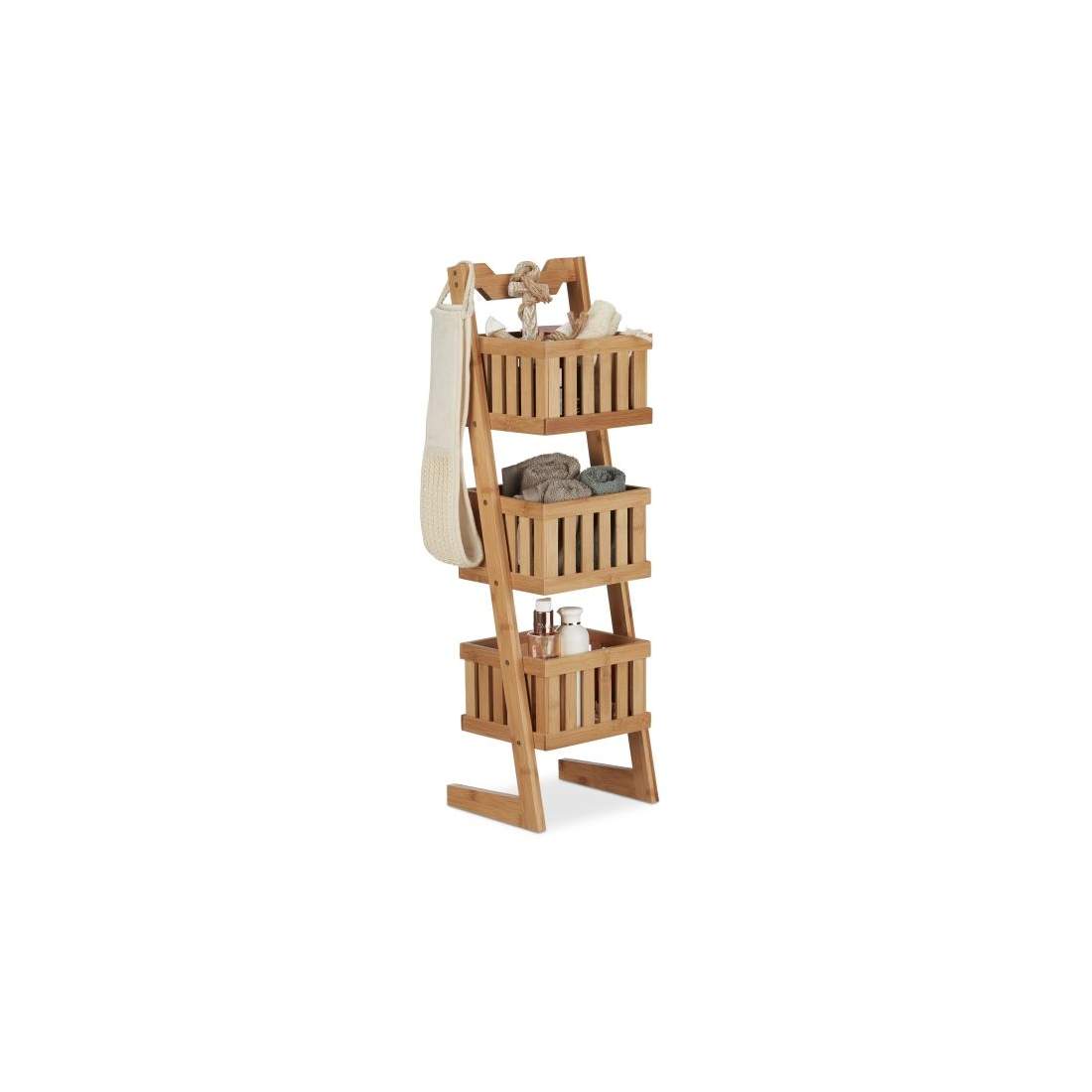 Relaxdays Toilettenhocker, klappbar, Hocker Toilettengang, Erwachsene, Bambus, rutschfest, HxBxT: 19x43,5x20 cm, weiß