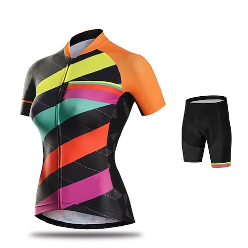 Per donna Maglia da ciclismo con pantaloncini Manica Corta Mountain Bike MTB Ciclismo su strada Rosa Viola Arancione A righe Patchwork Bicicletta Cuscinetto 3D Asciugatura Rapida Resistente ai Raggi