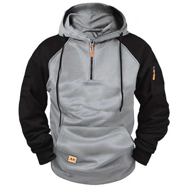 Men's Hoodie Quarter Zip Hoodie Red Black Black Red Blue Light Grey Hooded Plain Patchwork Color Block Sports Outdoor Casual Daily Streetwear Cool Sportswear Spring Fall Clothing Apparel