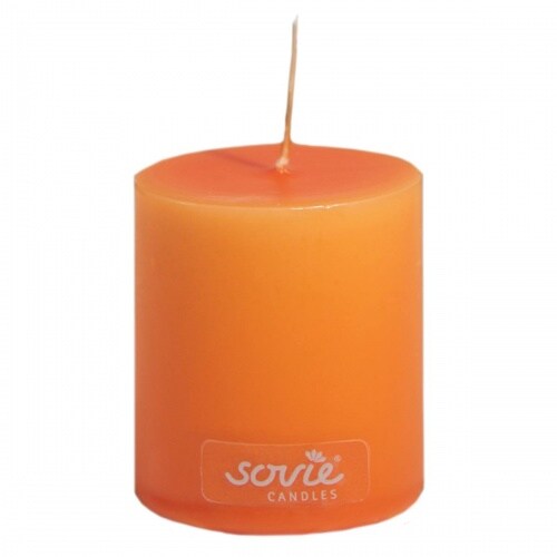 Sovie CANDLES Stumpenkerze in Orange Ø 50 mm x H 60 mm - Brenndauer ca. 16 Std. - Flachkopf Blockkerze