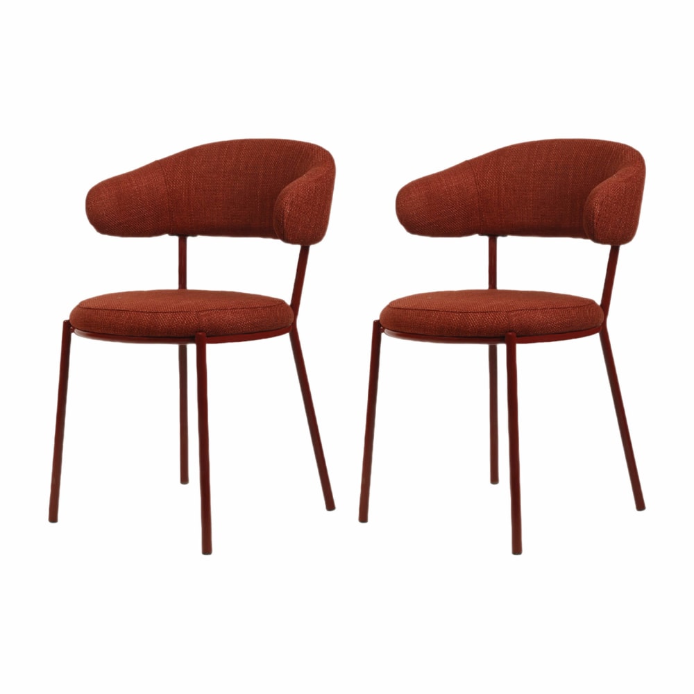 Set di 2 sedie da pranzo rosse imbottite in tessuto