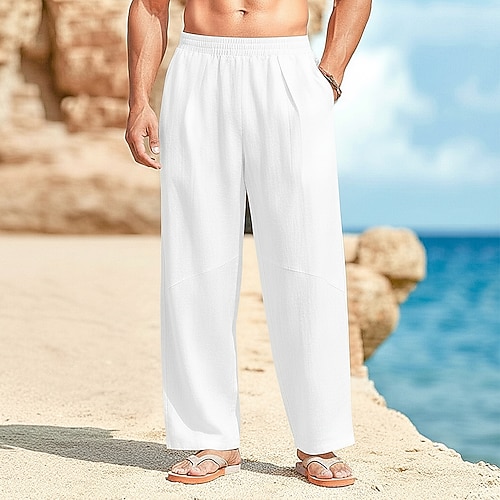 Per uomo Pantaloni di Lino Pantaloni Pantaloni Estivi Pantaloni Larghi Pantaloni da Spiaggia Coulisse Elastico in vita Gamba Dritta Semplice Comodità Traspirante Lunghezza intera All'aperto Casuale