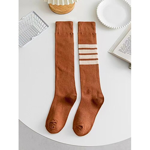 calzini a righe asimmetriche alti fino al ginocchio da donna - calzini sportivi in cotone sopra il polpaccio per l'uniforme scolastica per studenti, laurea, cheerleading e uso quotidiano