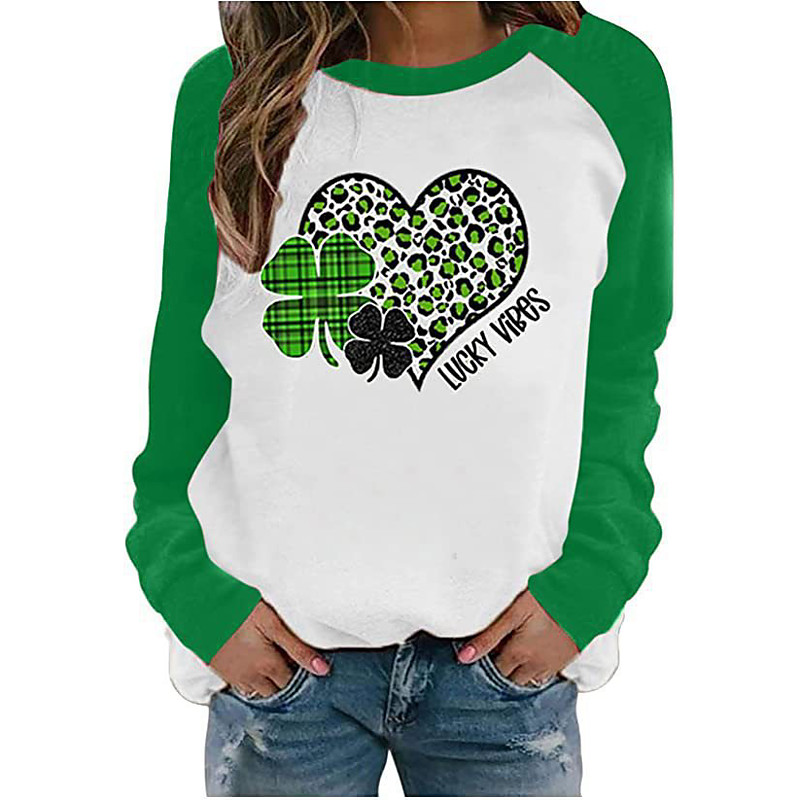 St. Patrick's Day Women's Lucky T Shirt Heart Shamrock Fashion Long Sleeve Round Neck Regular Tops St.Patrick's Day Casual Print Grass Green Black White Light Green Dark Green Spring Fall