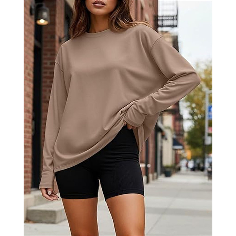 Women's Pullover Plain Elegant Warm Fashion Long Sleeve Round Neck Regular Tops Work Street Casual Patchwork Black Red Green Khaki Light Grey Fall Winter