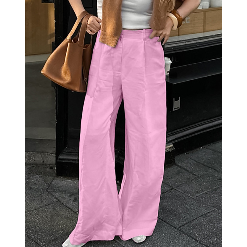 Women's Wide Leg Chinos Casual Full Length Natural Plain Pleated Wide Leg Comfy Breathability Casual Daily Black Pink Light Green Blue Spring Fall Loose Fit