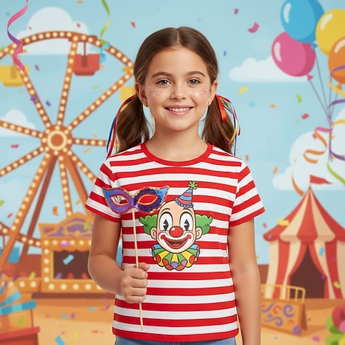 Karnevalskostüm 2026 Mädchen 3D Gestreift Clown T-Shirt Kurzarm 3D-Druck Sommer Frühling Sport Mode Streetwear Kinder 4-12 Jahre Rundhalsausschnitt Lässig Täglich Outdoor Normale Passform