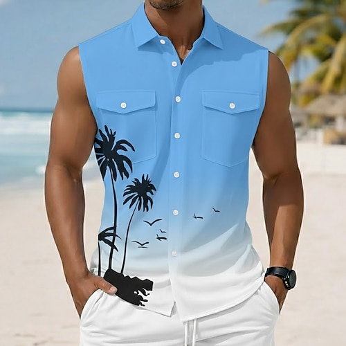 Per uomo Albero di Cocco Colore sfumato Piante Tropicali Camicia Camicia hawaiana estiva Camicia Aloha Senza Maniche Resort Vacanza al Mare Estate Primavera Collo ripiegato Stampa 3D Due tasche