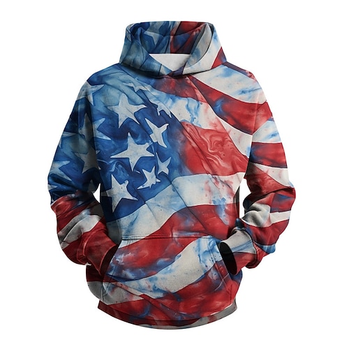 Herren Amerikanische Flagge Kapuzensweatshirt Mode Täglich Lässig Vintage-Retro Mit Kapuze Urlaub Party Streetwear Festival Blau Rote Rot 2 Drucken Herbst Winter Designer S M L XL 2XL