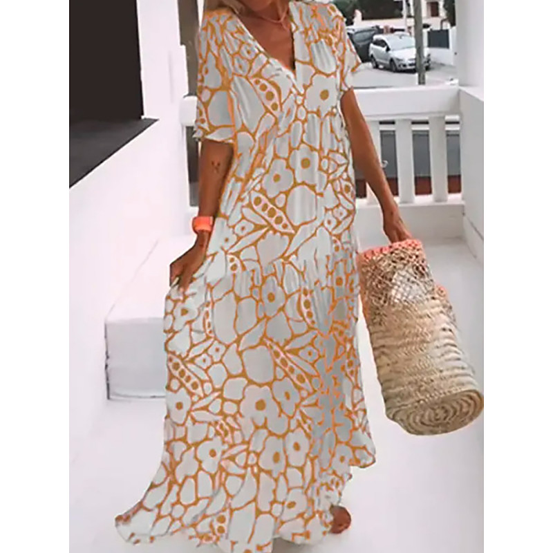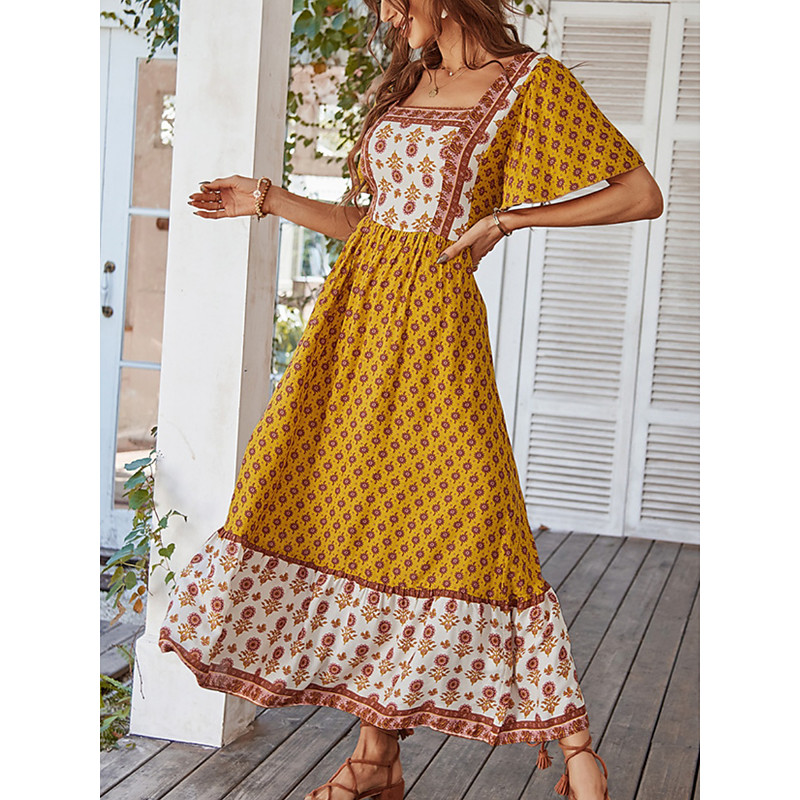 Women's Maxi Dress Casual Dress Swing Dress A Line Dress Stylish Casual Vacation Daily Regular Fit Floral Short Sleeve Square Neck Yellow Pink Orange Green Summer