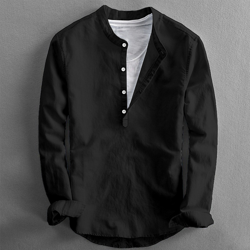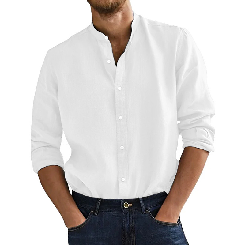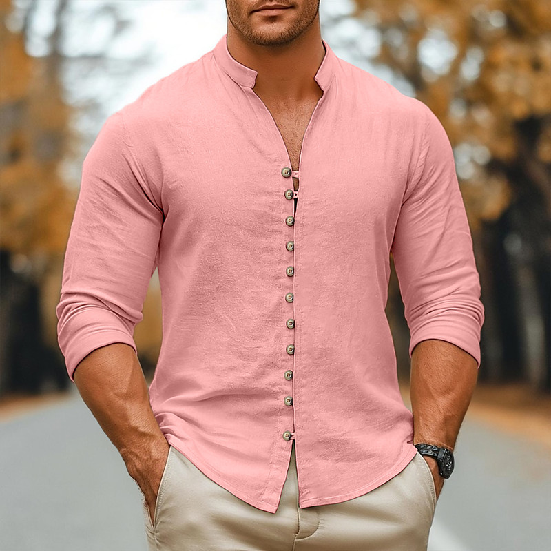 Men's Shirt Band Collar Shirt Summer Shirt Beach Wear Casual Shirt Button Up Shirt Solid Color Vacation Curise Black White Pink Orange Long Sleeve Collar Clothing Apparel