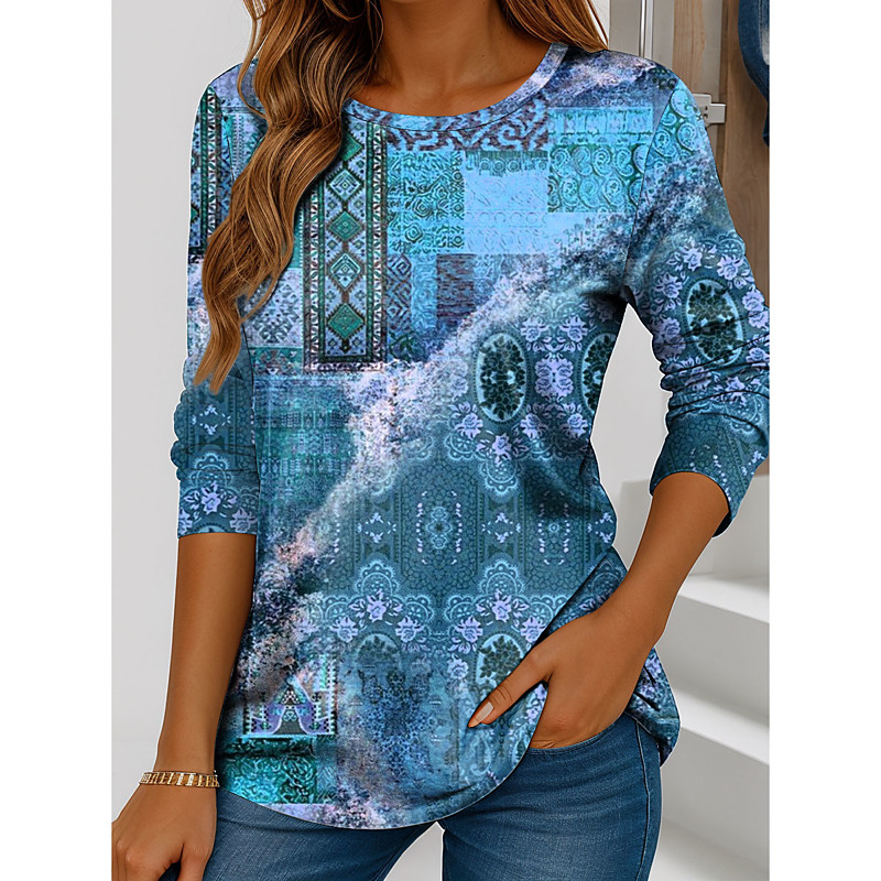 Women's Shirt Button Down Tunic Shirt Collar Long Sleeve Floral Graphic Geometric Casual Regular Tops Work Daily s Print Black Pink Orange Green Spring Fall Winter