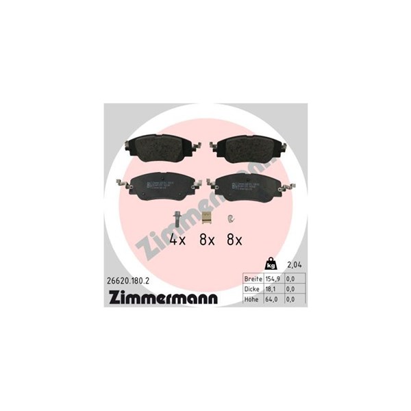 Jarrupalasarja, levyjarru, Etuakseli Zimmermann 26620.180.2 - citroën, ds, opel, peugeot - OE 16 813 711 80