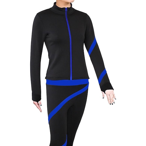giacca in pile per pattinaggio artistico, giacca da pattinaggio sul ghiaccio da donna e da ragazza, top nero elastico, abbigliamento da pattinaggio per competizione, termico, caldo, con