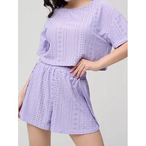 Per donna Set Pigiama Casual Comfort Colore Puro Elastico in vita Foro Shorts Quotidiano Casa Manica Corta Girocollo Blu Nero Bianco Rosa Viola Estate Primavera Vestibilità comoda