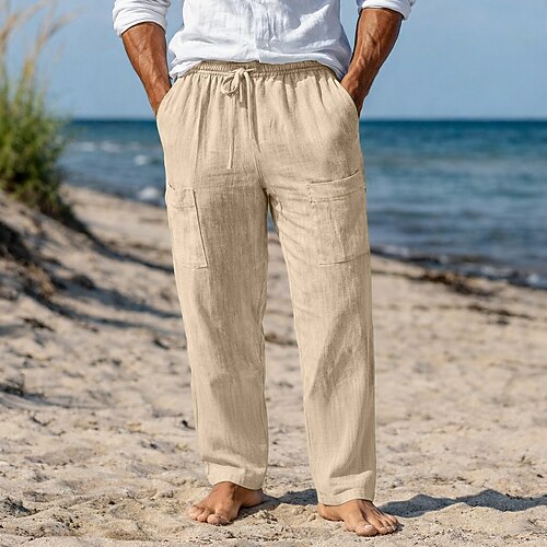 Per uomo Pantaloni di Lino Pantaloni Pantaloni Estivi Pantaloni Larghi Coulisse Tasca Elastico in vita Semplice Comodità Traspirante Lunghezza intera Casuale Quotidiano Ferie Vacanza Moda Nero Verde