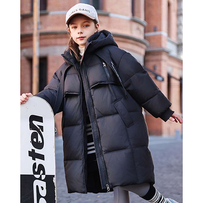 Kids Girls' Down Jacket Puffer Jacket Solid Color Sports Pocket Keep Warm Windproof Outdoor Coat Outerwear 5-12 Years Winter Black Purple Brown